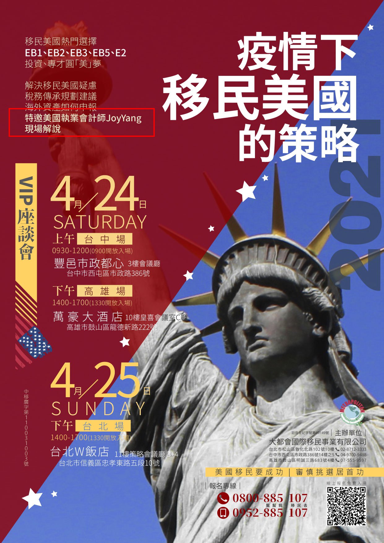 4/24 4/25受邀參與大都會移民公司疫情下移民美國說明會