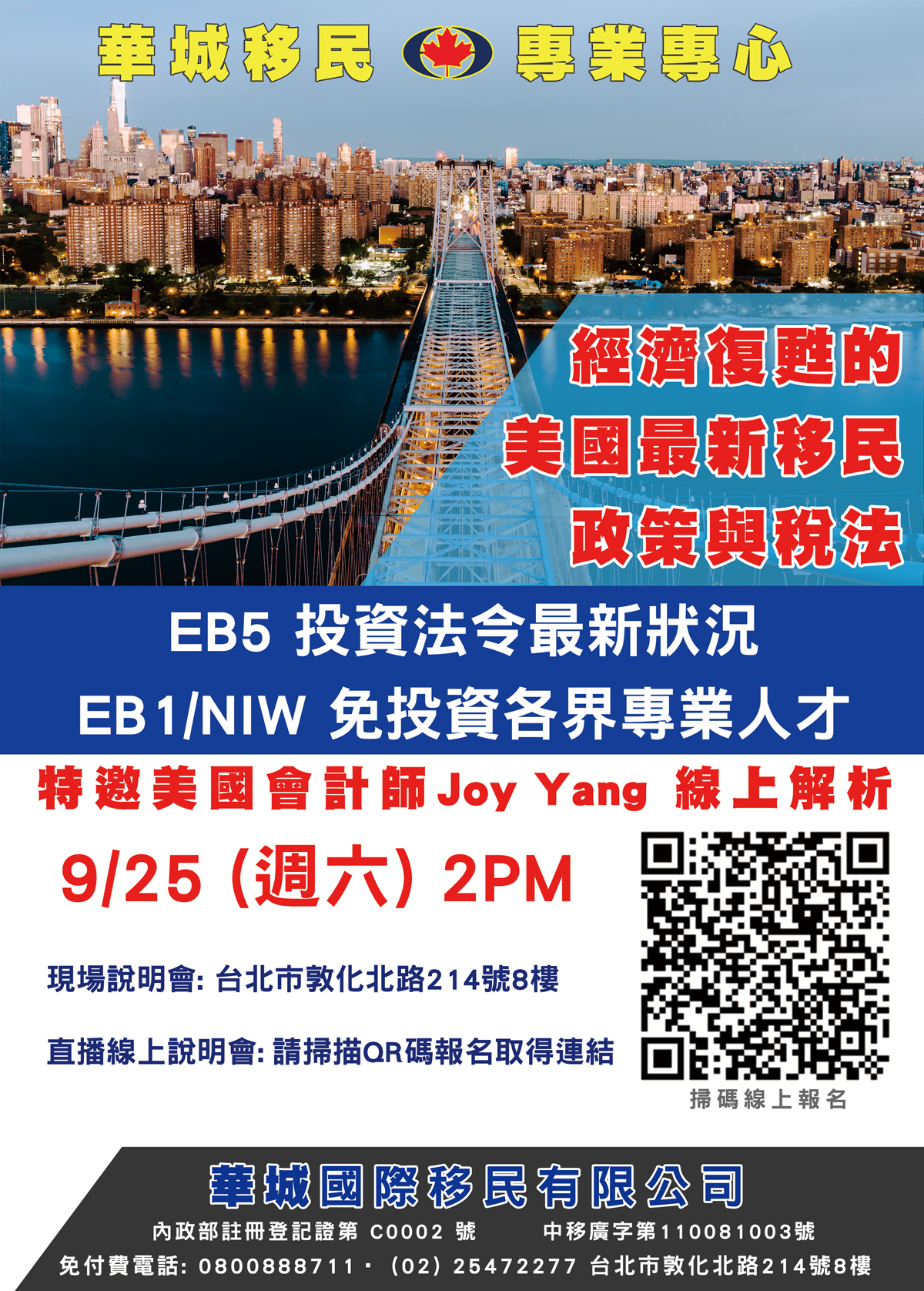 9/25 受邀參與華城移民公司經濟復甦中的美國最新移民政策與稅法說明會